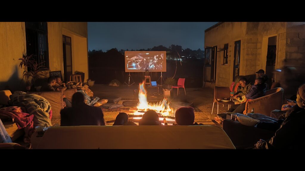 After a few false starts, I finally arrived at the studio, and what I saw took my breath away. Something I had never seen before; the exterior of the studio had been transformed into an outdoor theater. Sofas were arranged in a semi-circle around a giant screen, and mats with cushions spread in-between. Since we expected a chilly night, someone had gathered wood for a bonfire. Well, it was all designed so magnificently that it gave the feel of a movie night about to happen. I had never imagined us watching in an outdoor cinema, gazing at the stars as the movies unfolded their mysteries.